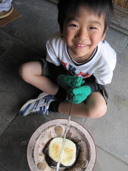 普段食べるおせんべいですが、七輪の炭火で実際に焼いてみてください。その「プクプク、じんわり」膨らむ様に、感動すること間違いなし。アツアツ焼きたてもおいしいです。炭火をうまく使い、上手に焼けるようになるかな?さあ、君も今日からせんべい職人だ!