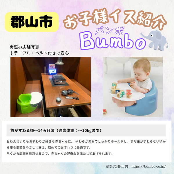ハイチェア、バンボ、使い捨てエプロン、お子様用食器セットも完備