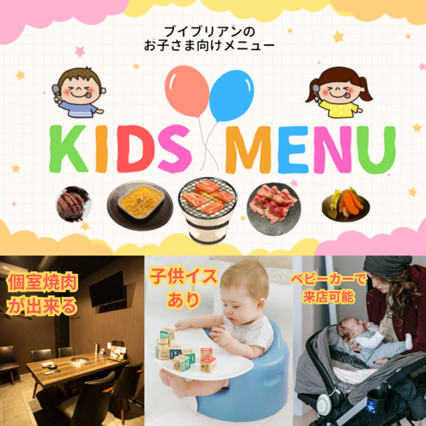食べ放題コースは、未就学児無料、小学生半額!最高鮮度のお肉をリーズナブルにご提供中!