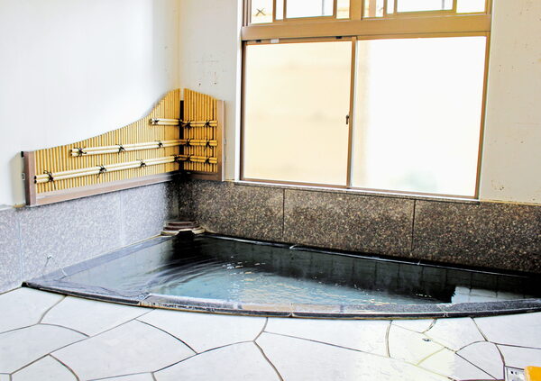 大理石で造られた内湯は、男女それぞれに用意されており、”美肌の湯”と言われるアルカリ性の透明な湯がたっぷりと注がれております。良質な湯を贅沢にかけ流しで楽しめます。
